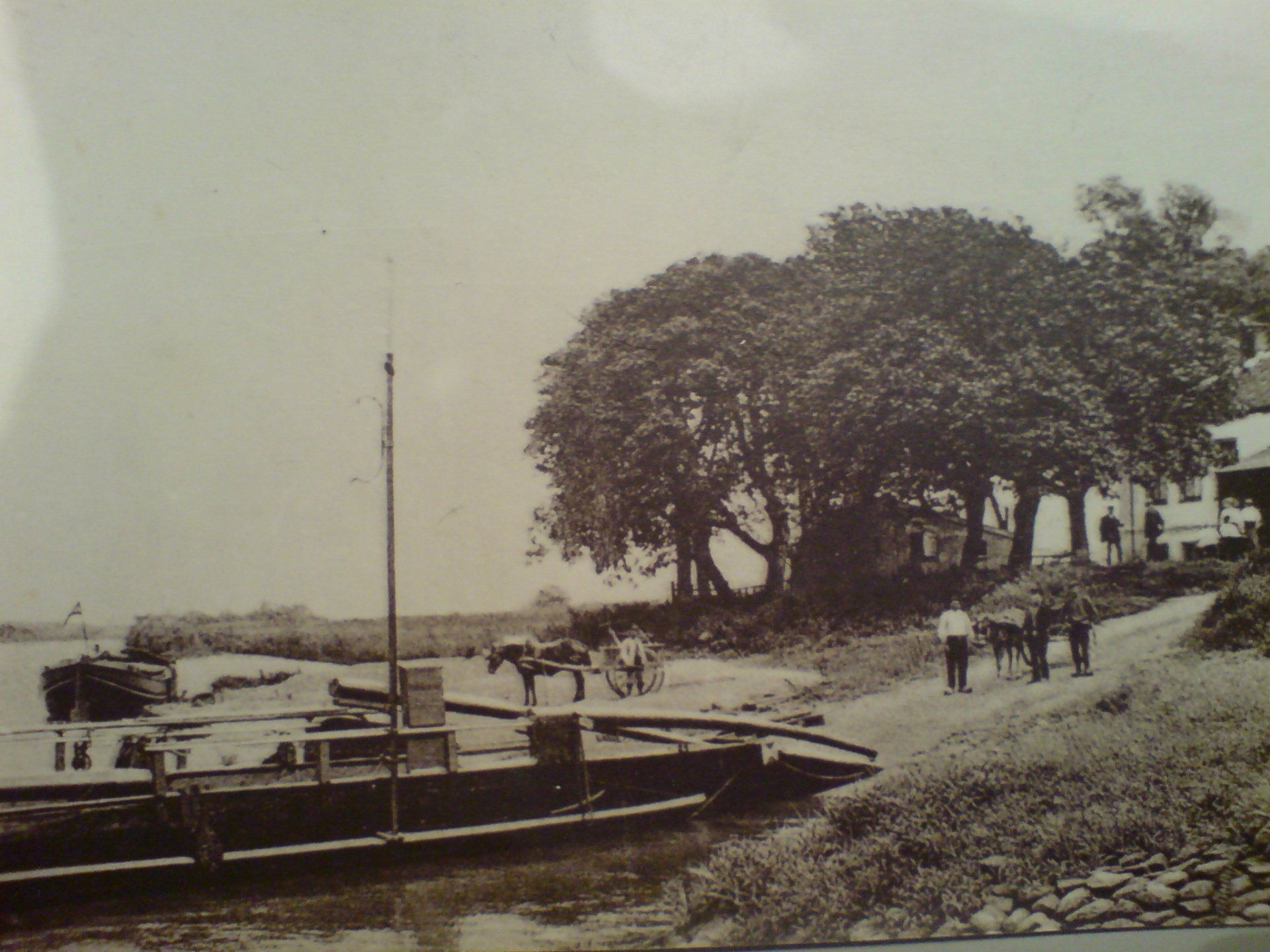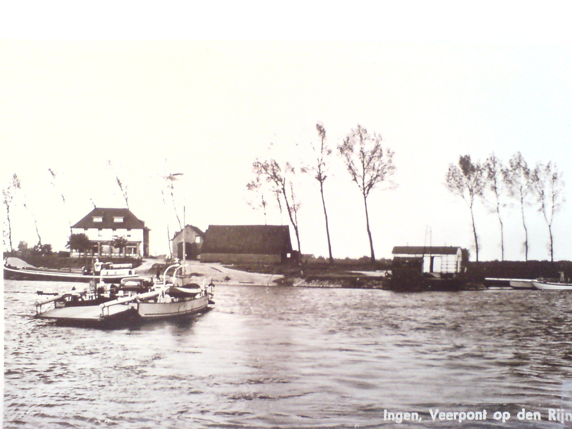 De veerpont “Ingensche Veer” is van oorsprong in die tijd een houten pont geweest. Hieronder ziet u een schilderij van het “Ingensche Veer” van 12 februari 1928. Dit is een afbeelding met de 1ste stalen veerpont te Ingen die in 1928 is aangekocht en was de voormalige veerpont te Druten.